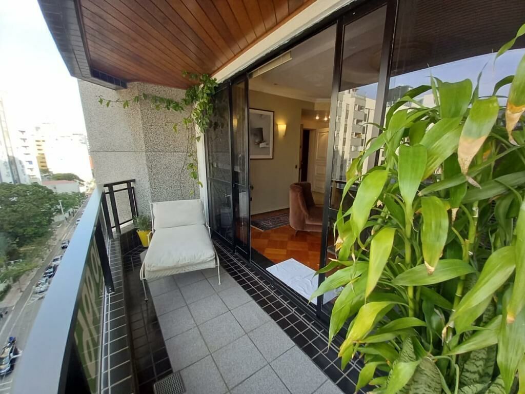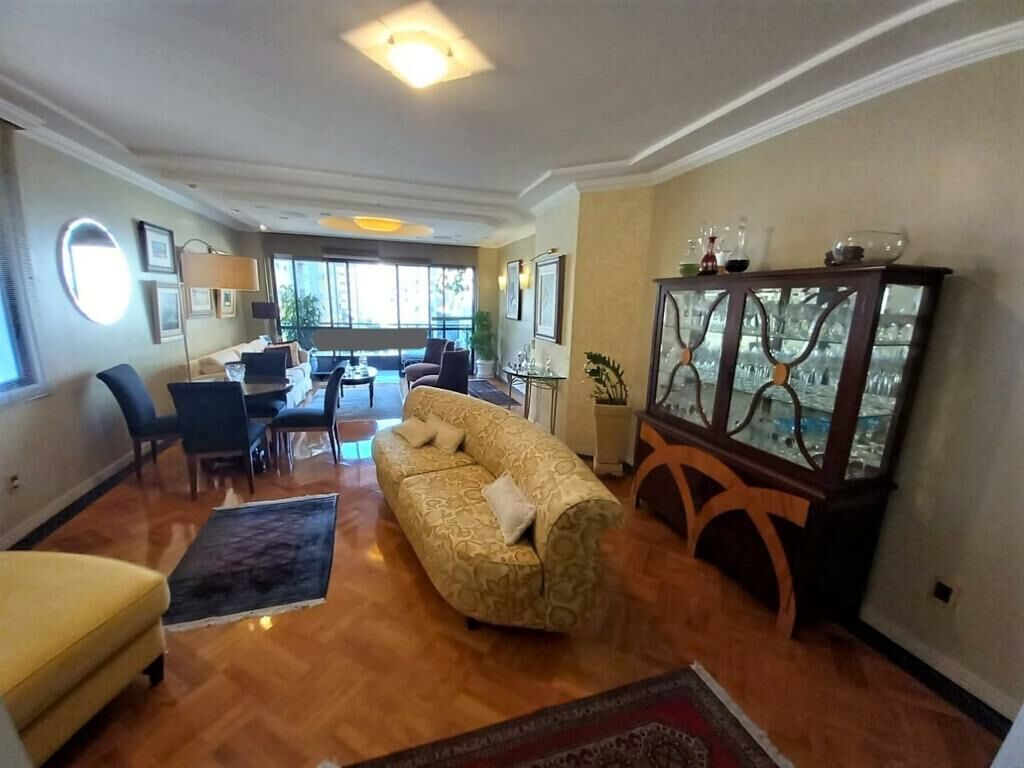 Apartamento com 3 dormitórios, 1 suíte, 3 banheiros, closet, lavabo, living, sala de jantar, sala de estar, estar íntimo, sacada, sacada com churrasqueira, cozinha, área de serviço, dep. empregada, WC auxiliar, vista parcial mar, ar condicionado, ar split, hobby box, persiana, teto rebaixado, aquecimento água, piso granito / taco e 2 vagas de garagem.